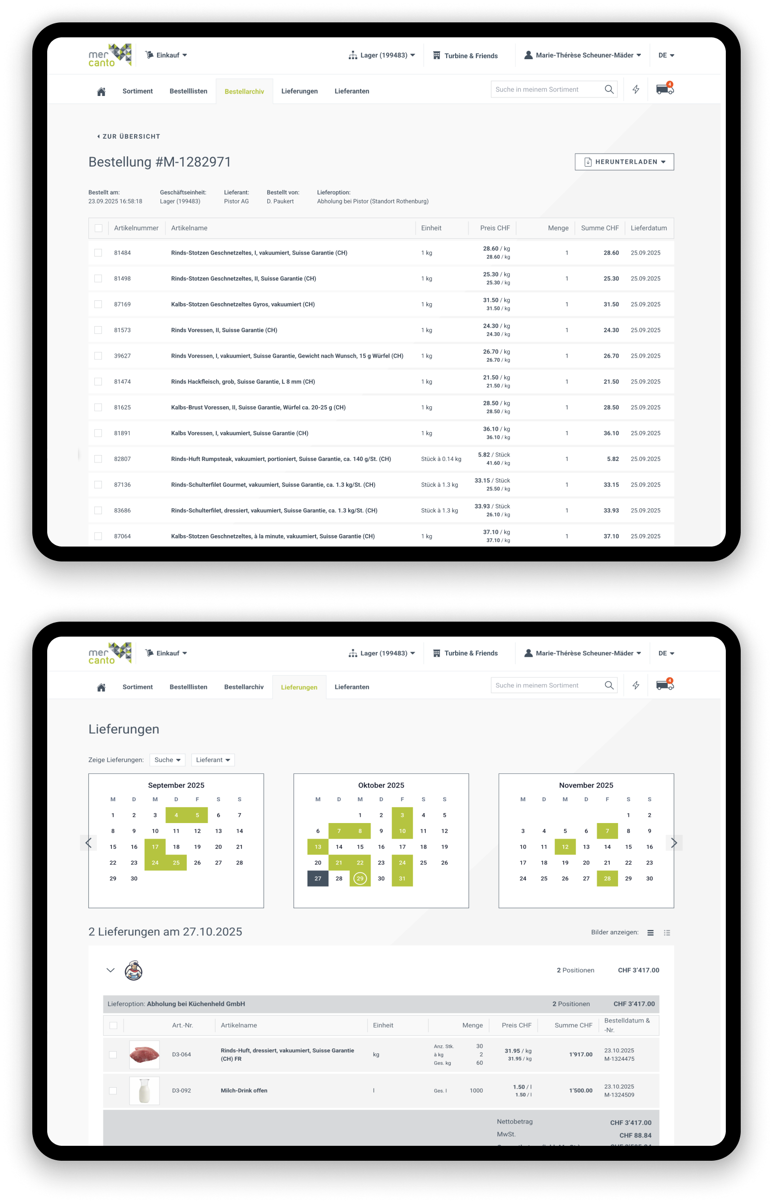 Für Kund:innen vereinfacht Mercanto den B2B-Einkauf radikal: Ein Login für alle Lieferant:innen, intelligente Shopping-Listen und eine Scanner-App-Integration für schnelle Nachbestellungen direkt aus dem Lager machen den täglichen Einkauf effizienter. Der übersichtlich nach Lieferant:innen strukturierte Warenkorb und individuelle Nutzungsrechte sorgen für klare Prozesse