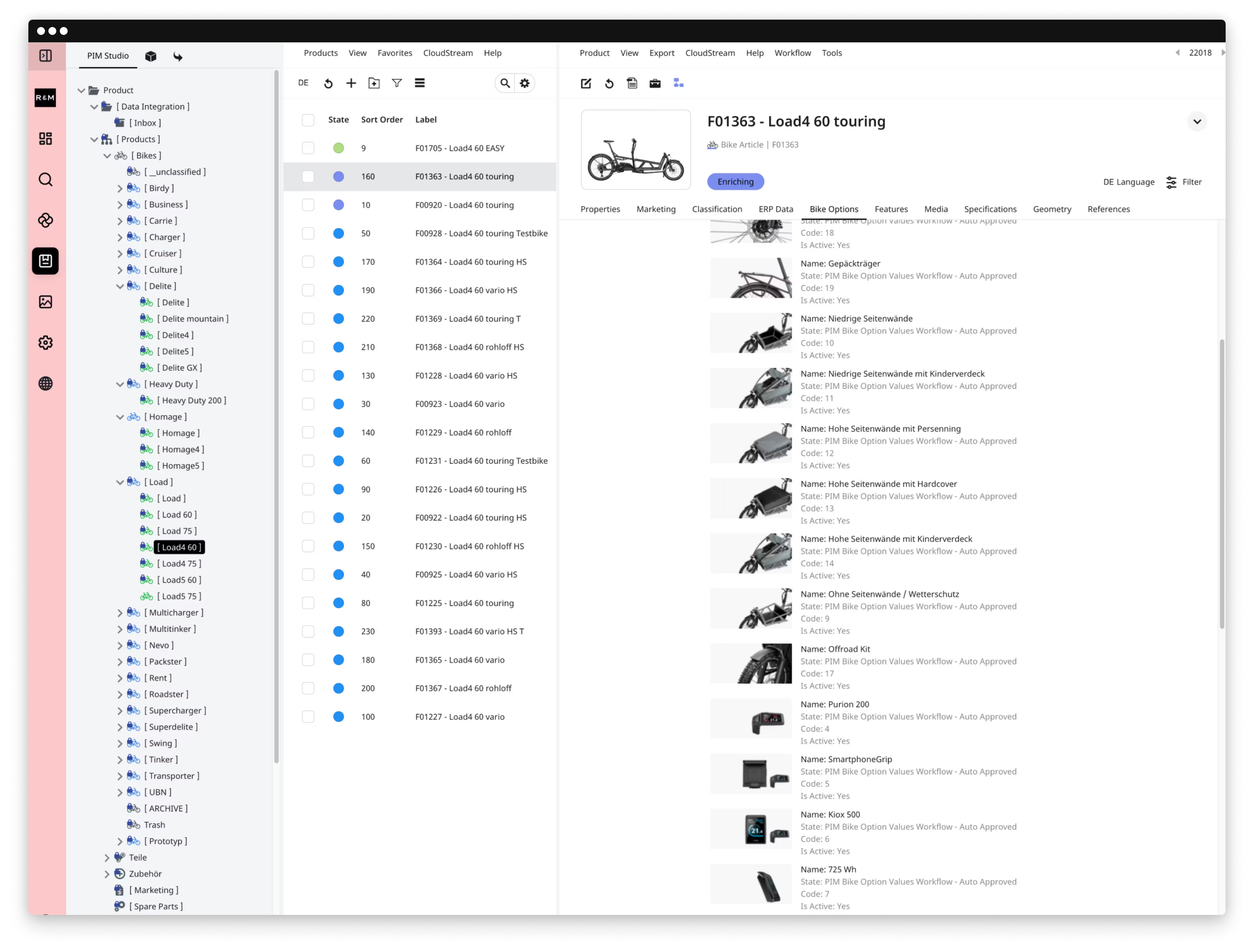 Mit der Integration eines neuen PIM-Systems verfügt Riese & Müller über eine zentrale, verlässliche Quelle für Produktstammdaten: Attribute, Varianten, Relationen sowie Länder‑, Kanal‑ und Übersetzungslogik werden einheitlich gepflegt, versioniert und über Workflows qualitätsgesichert. Das objektorientierte Datenmodell mit Vererbung bildet gemeinsame Bestandteile über die gesamte Produktpalette hinweg ab, lässt aber auch genug Flexibilität für Bike‑spezifische Texte/Bilder und optionale Abhängigkeiten. Über Datenverträge definieren wir, wie die Systeme Daten miteinander teilen, validieren und synchronisieren, damit die aufbereiteten Produktdaten via Data Hub konsistent in alle Kanäle gelangen – ohne Umbauten in den angebundenen Systemen.
