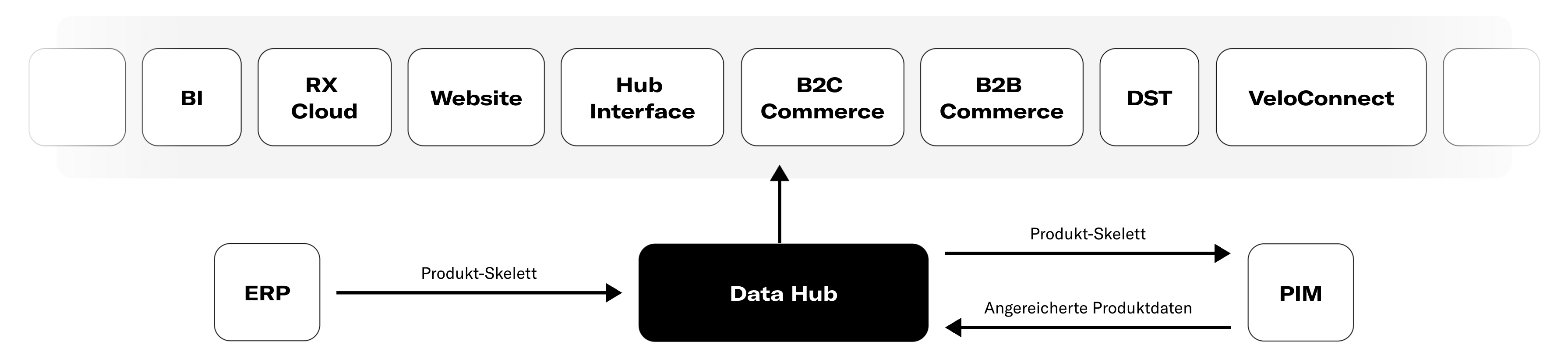Zum Schluss sendet der Hub das veredelte Produkt an die Commerce‑Systeme und transformiert es dabei in das jeweils benötigte Zielformat. So stehen die Daten kanalübergreifend konsistent und einsatzbereit zur Verfügung.